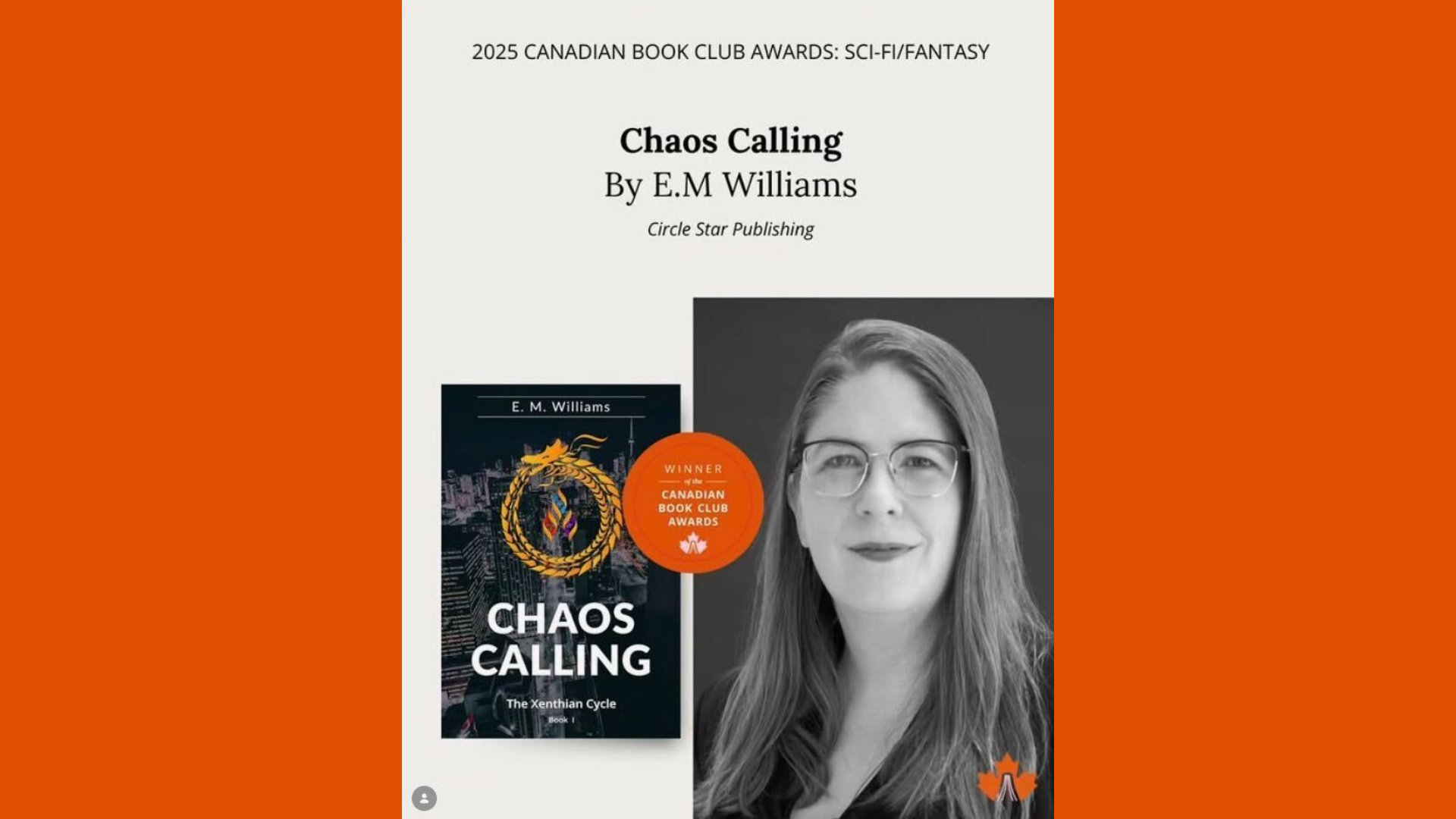 CANADA (February 11, 2026) — The Canadian Book Club Awards (CBCA), the country’s largest readers’ choice award, today announced that Chaos Calling: Book I of The Xenthian Cycle by E. M. Williams has won the award in the SCI-FI/Fantasy category for 2025.